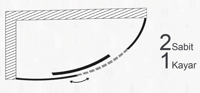 Sol Köşe Küvet Üstü 2 sabit 1 kayar